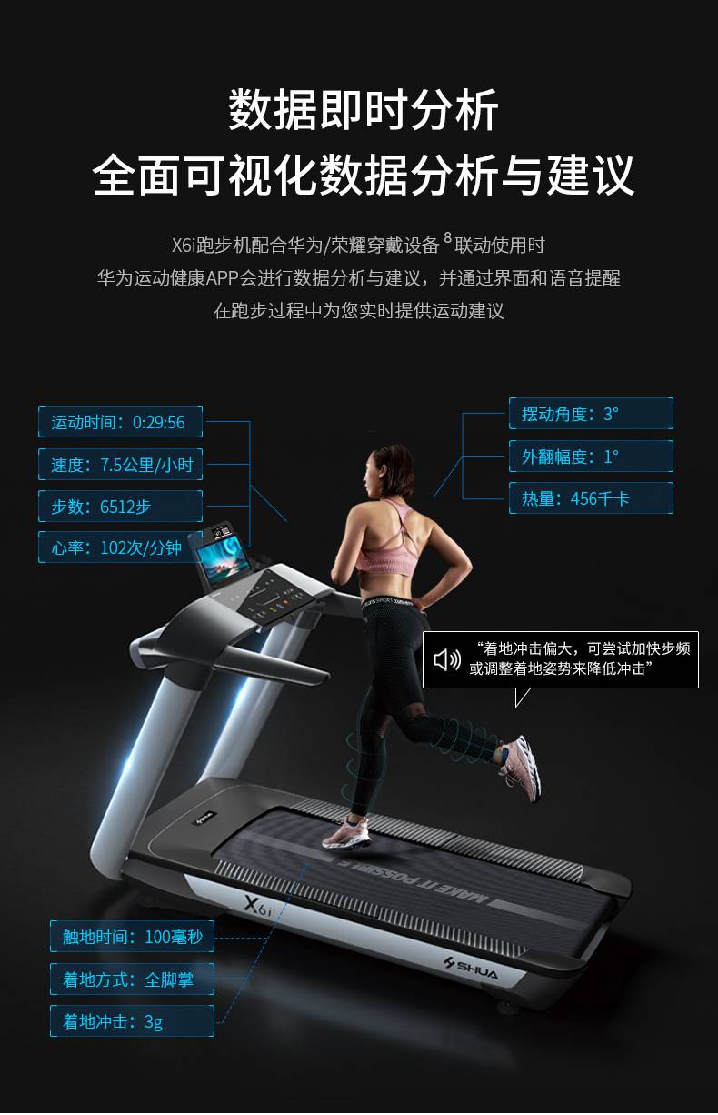 milantiyu跑步机-X6心率跑步机,可根据用户运动是实时心率,跑步机自动调节跑步速度、坡度等进行运动强度的调节,更科学;X6i华为版跑步机,可以通过连接华为运动健康APP,监测多种类型跑步数据。欢迎来电咨询~
