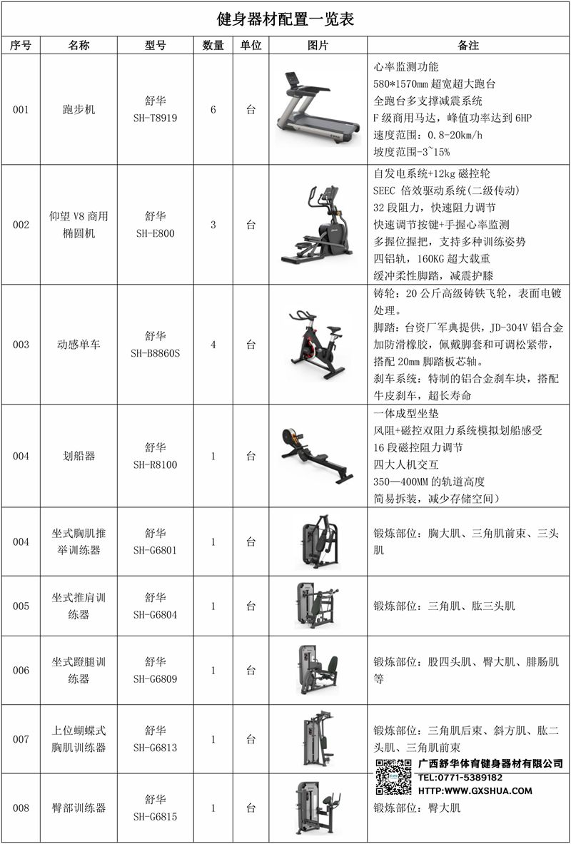 1.milantiyuV9智能跑步机SH-T8919*6台-独立仪表-简洁大气,全新外观设计,健康运动新选择;心率监测功能,可通过手握心率、无线心率带等不同方式实时采集心率数据;580*1570mm超宽超大跑台-跑感舒适,跑台整体安全稳定;全跑台多支撑减震平台,保证跑台超强支撑力,达到180kg支撑,满足专业健身房需求。F级商用马达-超强马达,AC 3.0HP 交流,峰值功率达到6HP,F级商用品质。速度范围达到0.8-20km/h;V9跑步机可实现跑台扬升功能,坡度范围-3~15%,满足客户不同的锻炼需求。