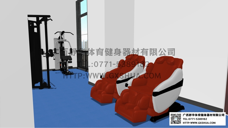 由于企业单位健身房的不规则性,根据场地、职工需求、整体预算,有氧器材区域配置jiuyou.com跑步机2台,椭圆机、动感单车、划船器各1台,满足职工的日常有氧训练需求,有效地提升心肺功能;力量器械配置单人站综合训练器、小飞鸟,满足使用者全身锻炼的需求;自由力量区域配置史密斯机、哑铃套组、腹肌板满足多样化训练需求,促使健身训练更丰富,休闲区配置按摩椅,可以促进血液循环,让员工使用按摩椅放松身心,可以能够有效缓解工作压力。