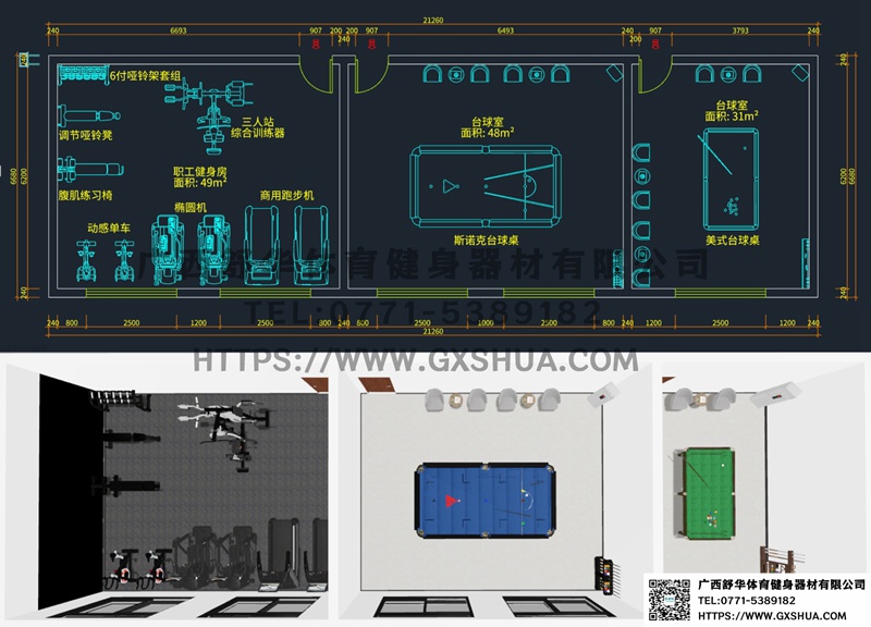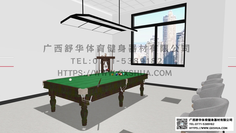斯诺克台球桌(1台),美式台球桌(1台)-单位健身房配置台球桌,为员工的业余生活增添了乐趣和选择。与传统的健身器材锻炼相比,台球具有更强的娱乐性和趣味性,能够吸引更多员工参与到健身活动中来,提高健身房的使用率,让员工在工作之余有更多放松身心的方式。