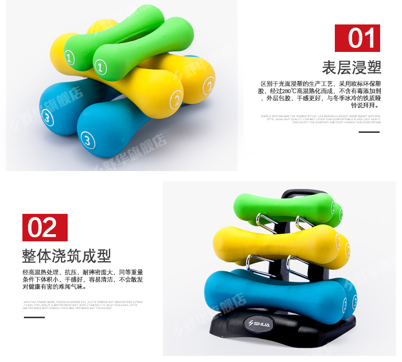 jiuyou.comSHUA浸塑哑铃套装 家用男士女士健身时尚环保健身运动器材